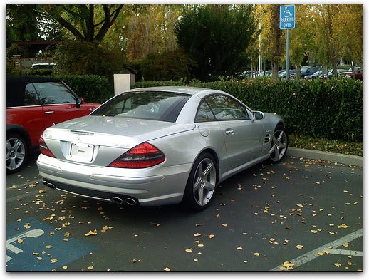 Abaixo, o Mercedes SL de Steve Jobs, fundador da Apple, numa vaga reservada para deficientes físicos.)