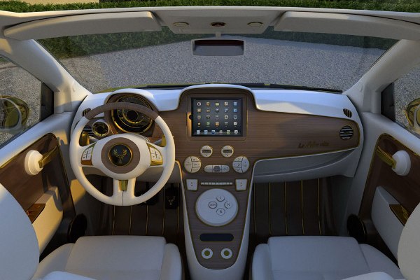 O interior é inteiramente novo: o painel tem madeira, com diamantes incrustados, couro nos bancos, botões de ouro 24 quilates e um iPad Supreme Edition, com ouro e diamantes (veja o iPad abaixo).