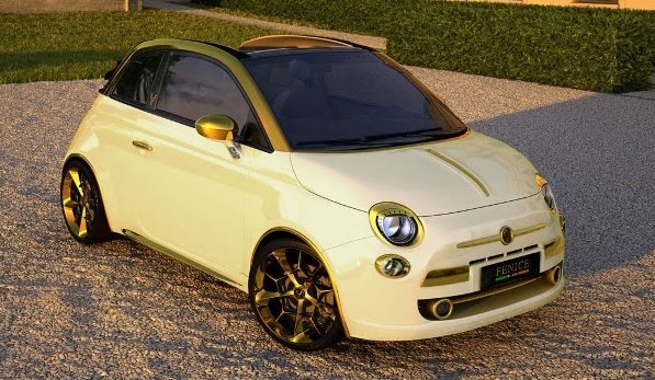 A empresa de tuning Fenice Milano desenvolveu, especialmente para um empresário chinês, um Fiat 500C (conversível, não disponível no Brasil), na versão Abarth, cravejado de ouro e diamantes! Assim nasceu a versão “La Dolce Vita Gold and Diamonds 200Hp”. A pintura é especial e traz minipartículas de ouro (24 quilates). E a capota é costurada com fios de ouro!