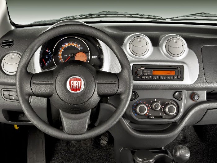 O que mudou pra valer no Uno 2015 foi o interior. Para começar, o painel foi totalmente redesenhado, assumindo uma aparência quadrada, com saídas de ar centrais trapezoidais e verticais cercando a nova tela (que não é multimídia, apenas o display do rádio e do Bluetooth, opcional), e gabinete central destacado. As saídas das extremidades continuam redondas e são as mesmas do Palio, inclusive o suporte.