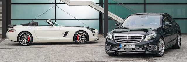 Disponível nas carrocerias Coupé e Roadster, o SLS Final Edition mantém o motor 6.2 V8 de 591 hp e traz fibra de carbono exposta no capô, retrovisores e aerofólio, além de rodas exclusivas. O sucessor do SLS deverá ser menor, mais acessível, para concorrer diretamente com o Porsche 911, e não deverá ter portas asa-de-gaivota. Outra novidade anunciada pela Mercedes é o Classe S 65 AMG, versão mais esportiva do sedan de luxo, que já contava com a opção S 63. O motor 6.0 V12 possui 630 horsepower e o leva de 0 a 100 km/h. A velocidade máxima é limitada eletronicamente a 250 km/h.
