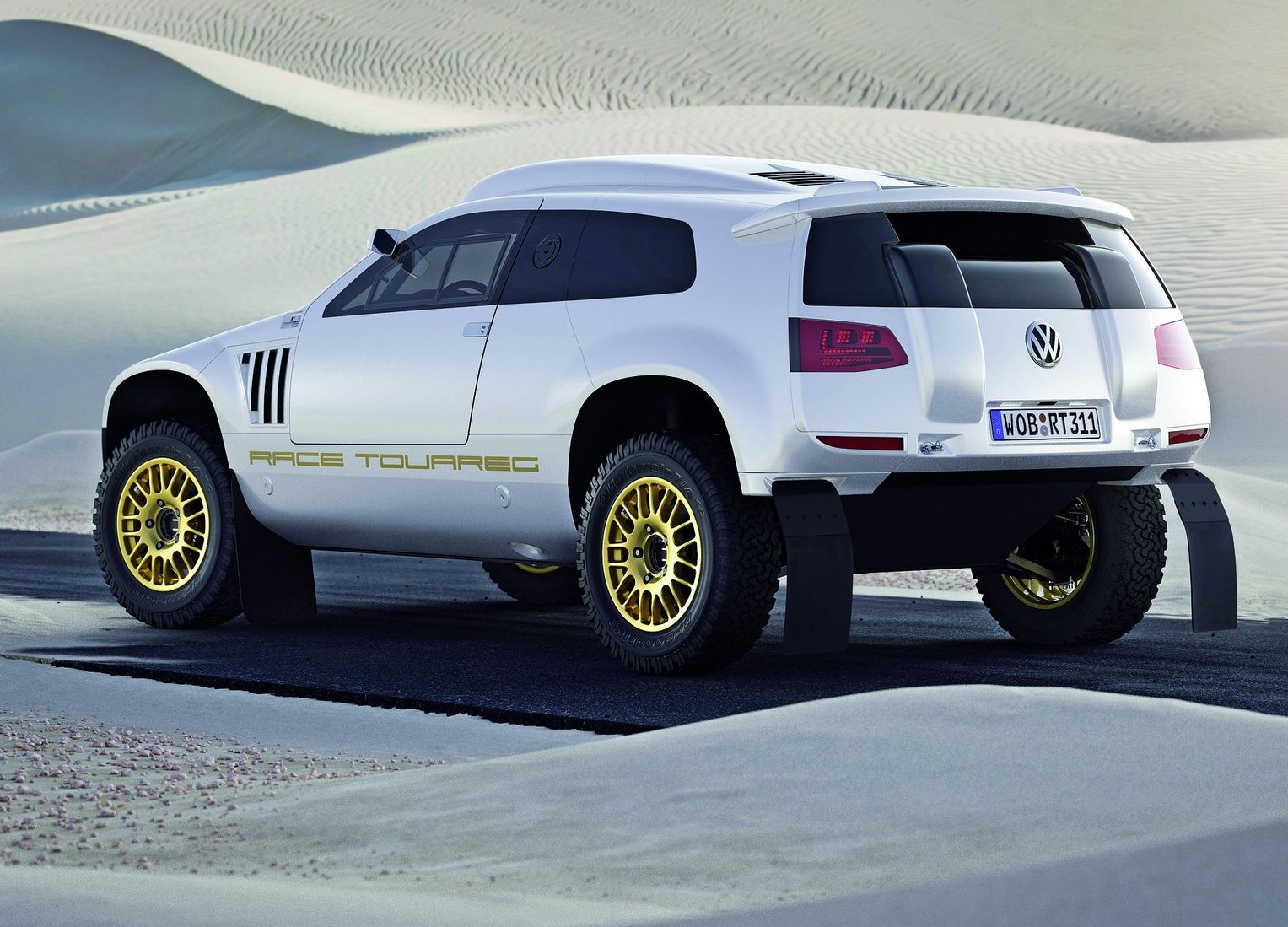 Como se pode ver, o Race Touareg só tem em comum o nome, quanto se analisa o exterior. Porém o modelo de rally é igualmente rápido: faz de 0 a 100 km/h em menos de 6 segundos! Agora as rodas são aro 18", feitas pela BBS, cor dourada - que contrasta com o branco "Morning Magic".