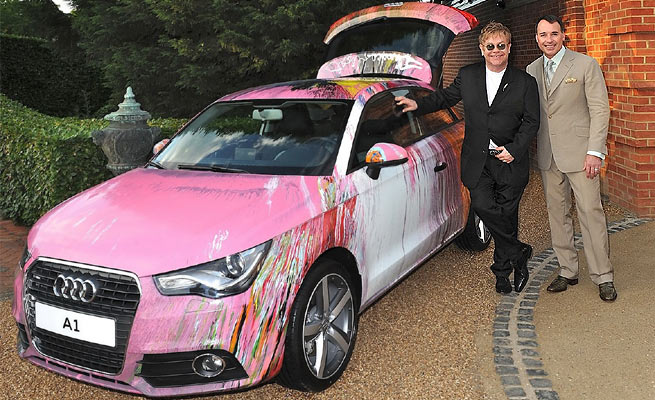A Audi já colaborou com o leilão de Elton John oito vezes, mas a primeira em que doou um objeto de arte. Este é o primeiro A1 a rodar no Reino Unido, dando valor maior ao modelo, pintado predominantemente de rosa.